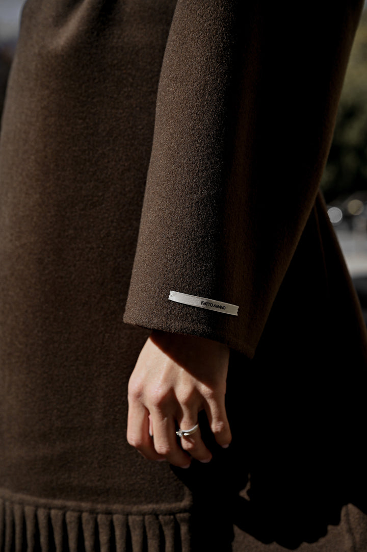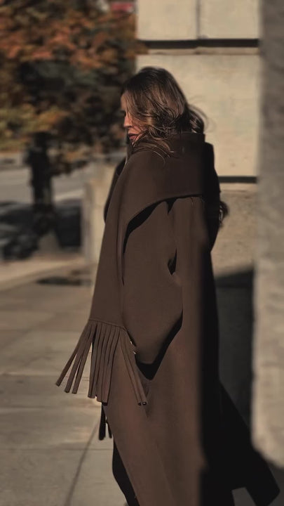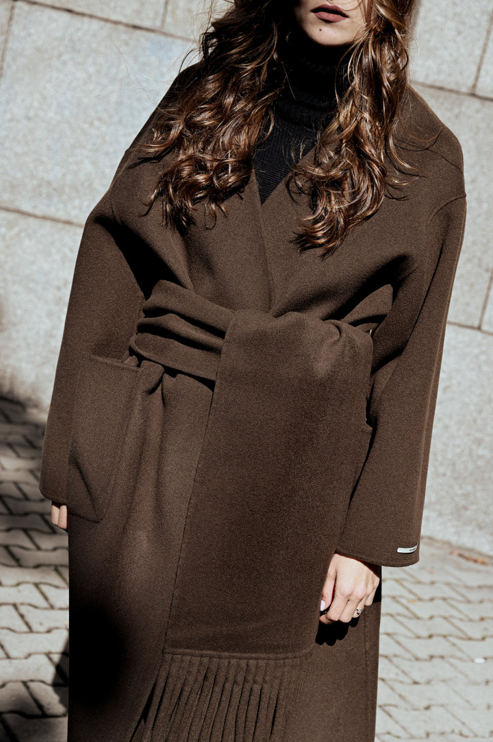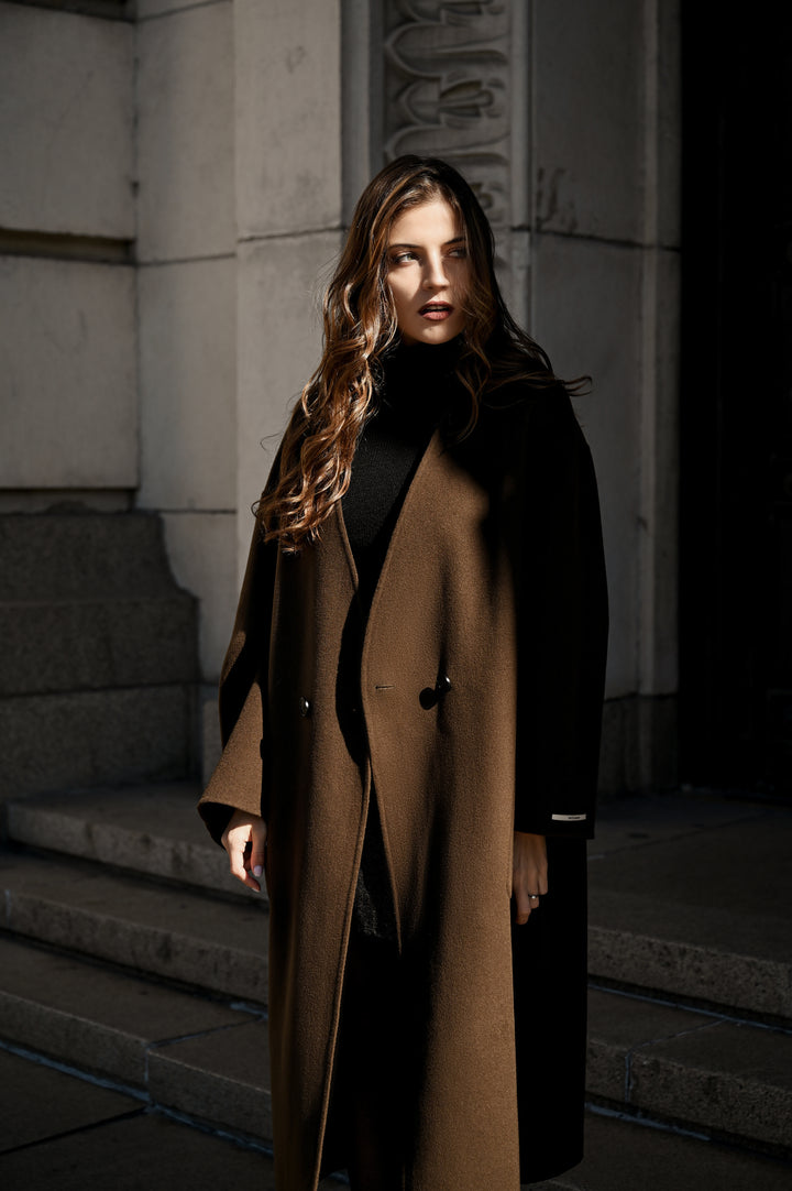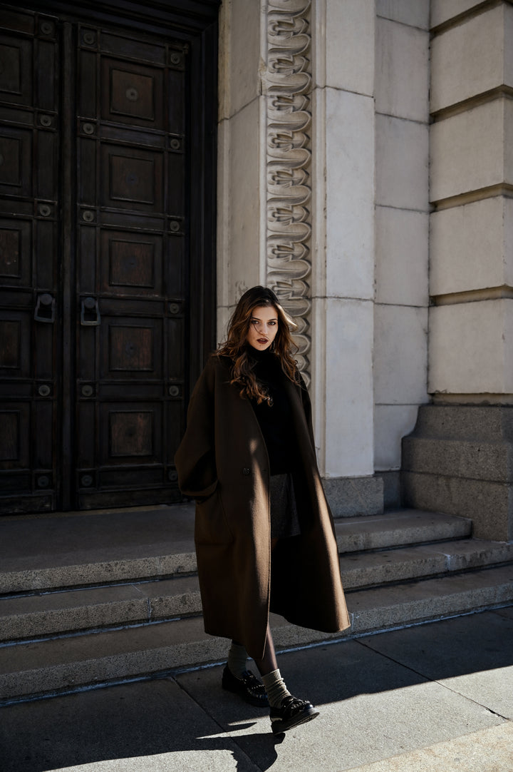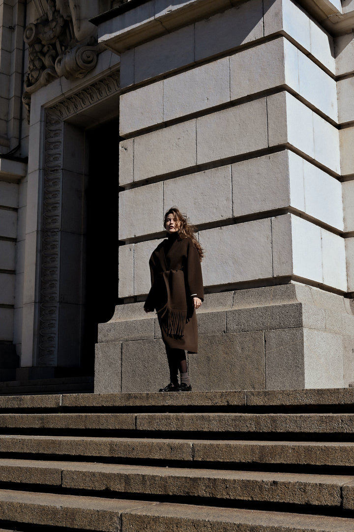 „Jules“ е перфектният избор както за специални поводи, така и за изисканото ежедневие. Предлага се в два изтънчени нюанса - дълбоко кафяво и топъл карамел, които излъчват класика, топлина и характер. Независимо кой цвят изберете, палтото ще ви обгръща с комфорт и неподправен стил, превръщайки всяко излизане в изискан жест.