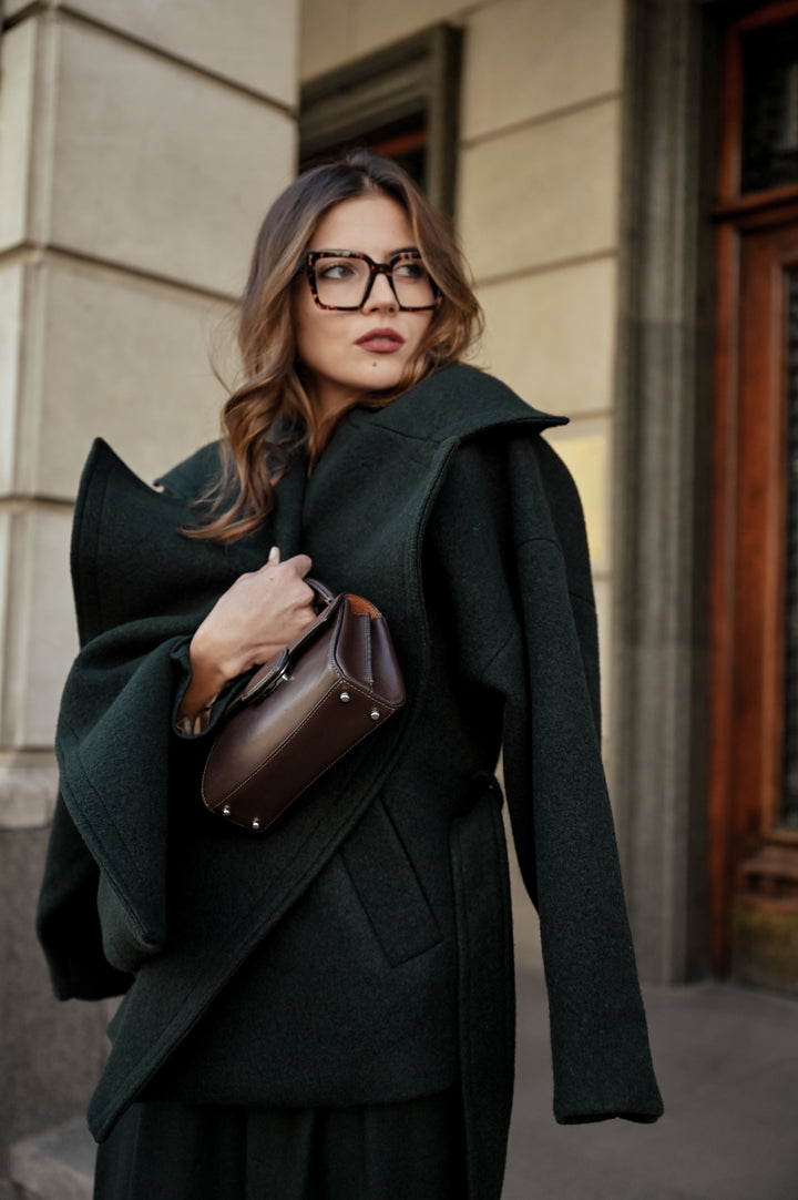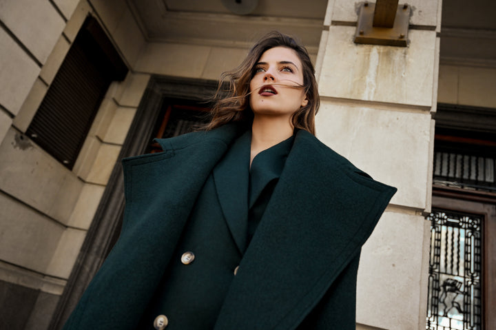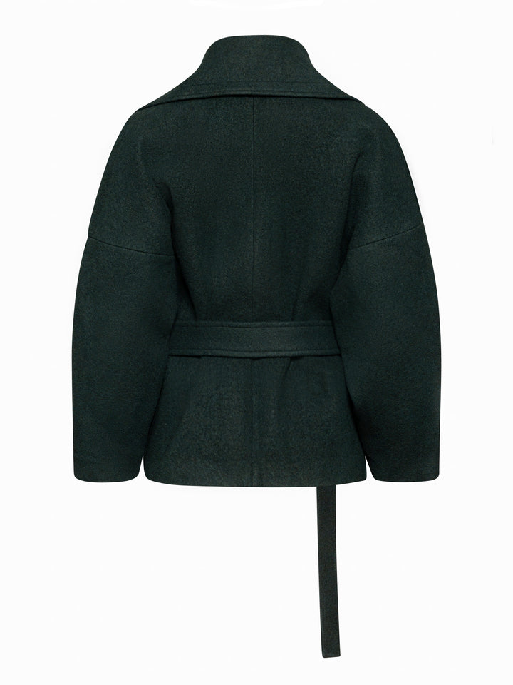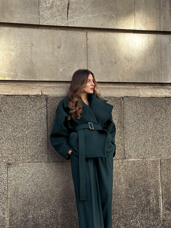 The Wool Short Coat "Josephine" is a sophisticated and modern addition to any wardrobe. Its timeless Deep Green color and elegant design make it a versatile piece for any occasion. Made from premium "Manteco" Italian wool, this short coat is both luxurious and durable. Complete with a contasted brown melange buckle belt for a touch of glamour. Perfect for Spring, Autumn and Winter seasons.