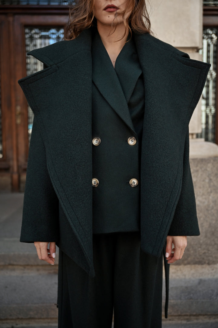 The Wool Short Coat "Josephine" is a sophisticated and modern addition to any wardrobe. Its timeless Deep Green color and elegant design make it a...